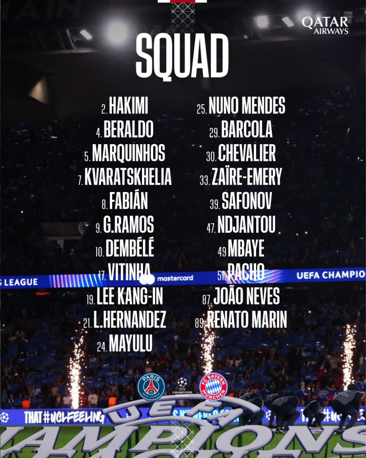 巴黎对阵拜仁大名单