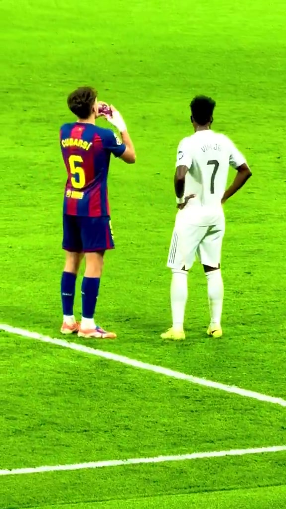 在赛事 中,皇马翼锋维尼修斯从场边拿了一瓶水走进场内西甲新闻最新消息,口渴的巴萨后场球员库巴西上前讨水喝,巴西人没有犹豫直接递给了西班牙后场球员。