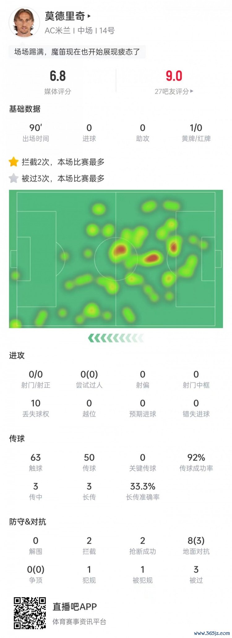 10月29日讯 意甲第9轮赛事 ,莫德里奇踢满全场,欧洲杯直播米兰客场应战 1-1战平亚特兰大。